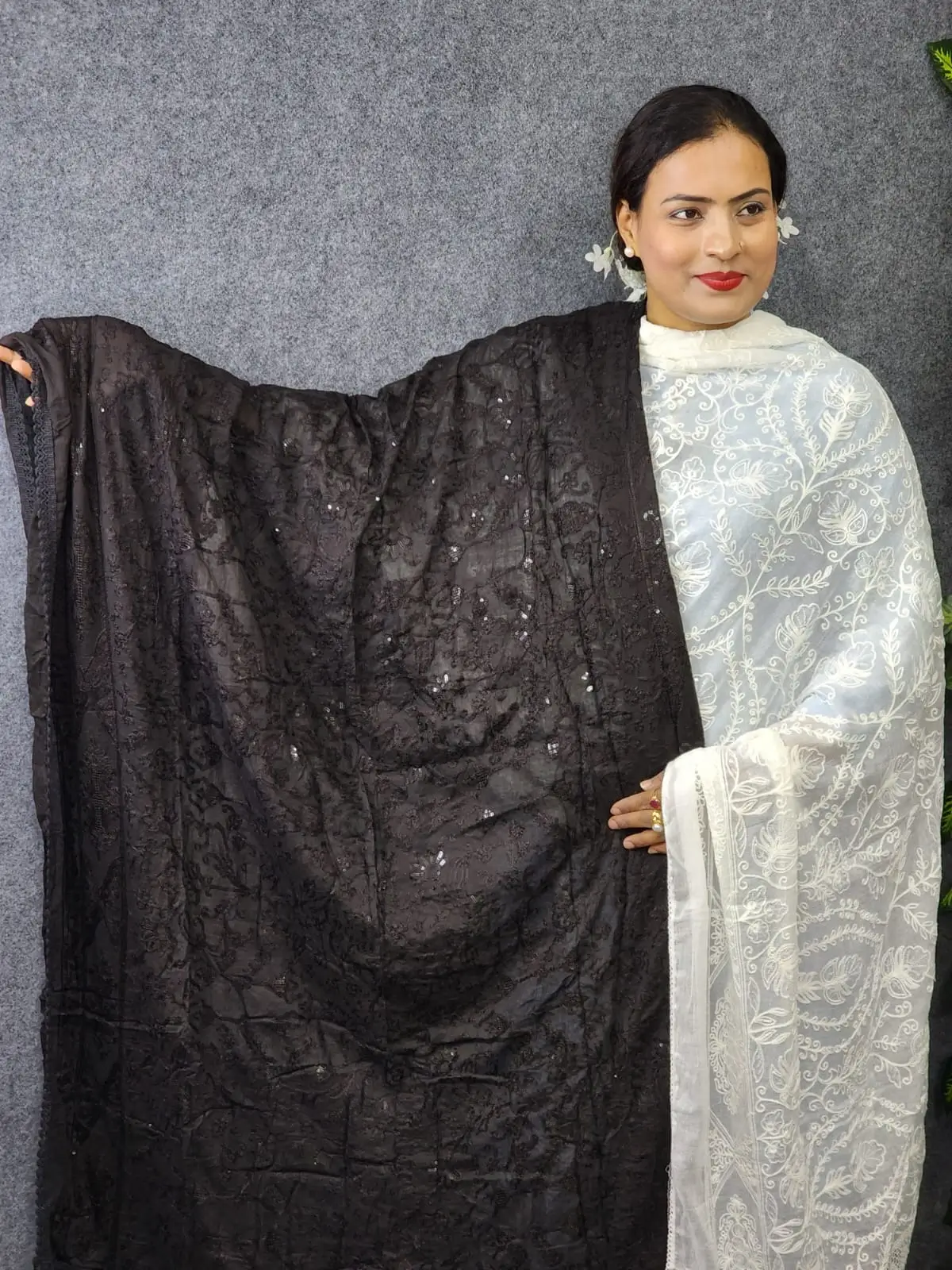 হাতের কাজের সাদা ওড়না